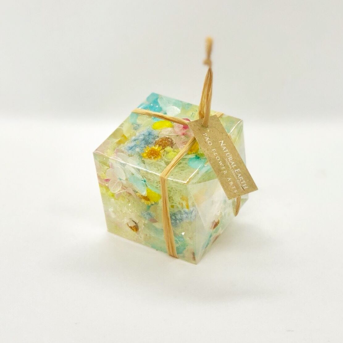 まるでクリスタルの中に花が浮いているように見え、光にあたり反射して何重にも花が見える不思議なインテリア雑貨。ハワイの海をイメージしました。海藻ハウスでかわいい熱帯魚たちがワイワイガヤガヤと飛び回ってるような元気で楽しいデザインです。